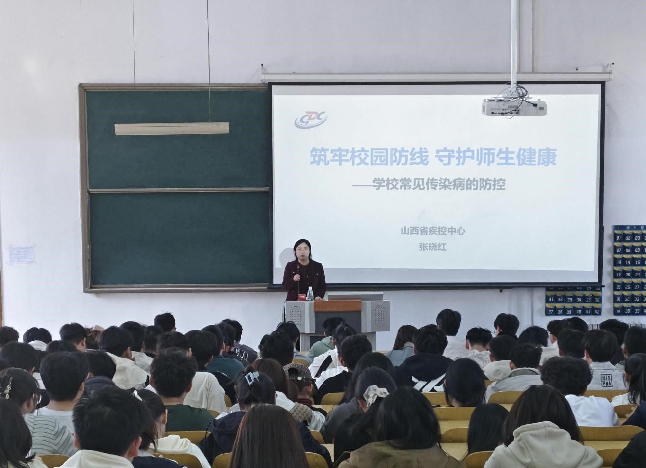 为强化校园健康安全防线,将健康安全教育融入人文素质培养体系,2025年3月21日,由太阳成集团tyc122cc学生工作部主办、太阳成集团tyc122ccvip承办的“筑牢校园防线 守护师生健康——学校常见传染病防控”人文素质报告在南校区HK3-6阶梯教室举办。报告特邀山西省疾病预防控制中心传染病监测预警中心主任、副主任医师张晓红主讲,学院180余名师生到场聆听。