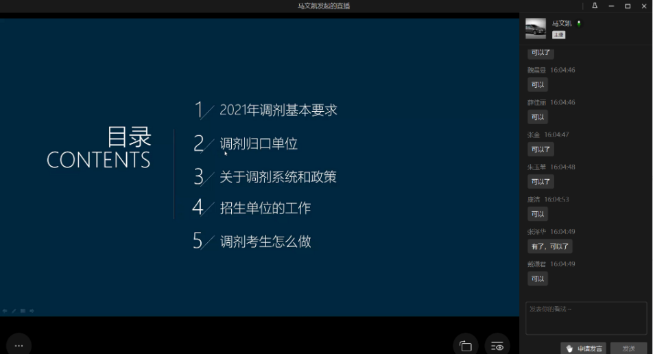 马文凯老师就考研复试及调剂的基本要求、调剂的注意事项及往年调剂工作中所遇到的常见问题为大家做了详细的解释说明。讲座结束后同学们对于调剂志愿的填报等问题与马文凯老师进行了良好的互动交流。