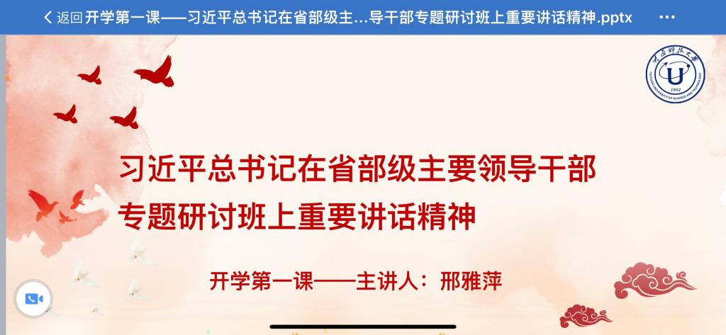 9月11日—12日间,在做好常态化疫情防控的前提下,太阳成集团tyc122ccvip全体辅导员和班主任采取“线上+线下”相结合的形式,以“学习贯彻习近平总书记在省部级主要领导干部专题研讨班上的重要讲话精神”为主题,举行了2022年秋季学期“开学第一课”,希望每一位同学勇敢追梦,不负韶华,用满腔的热情、高昂的精力投入新学期的学习生活当中,争当新时代有为青年。