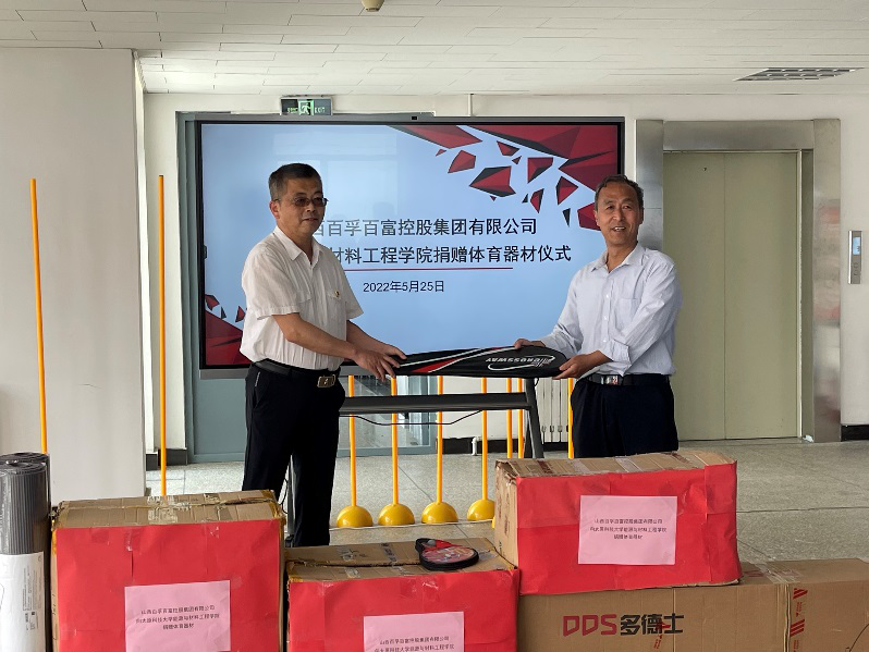 上午议程结束后,百孚百富公司董事长王永兵先生带领企业管理技术人员前往能源学院参观学习,向能源学院捐赠价值6000余元的体育器材,并围绕“创新创业与责任担当”与学生开展沟通对话,同学们反响强烈,踊跃提问。