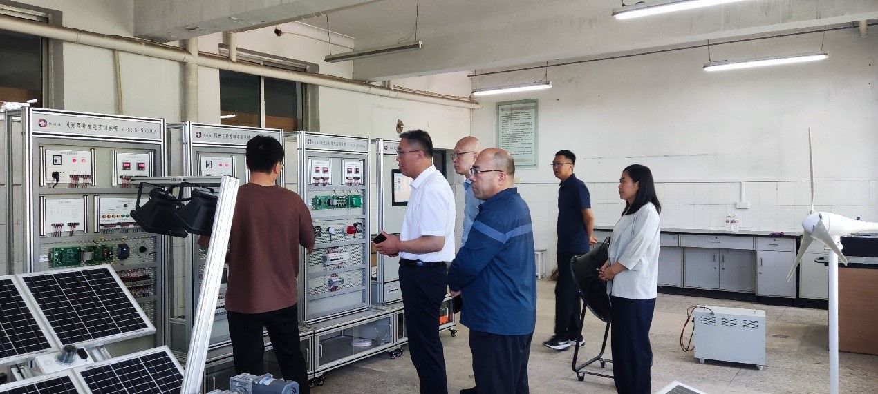 座谈会上,学院院长杜晓钟介绍了学院在学科建设、实验室建设及师资培养等方面的成果,并重点展示了新能源领域的前沿教学资源。在实验室参观环节,风光互补发电实训系统、圆柱电池工艺生产流程虚拟仿真软件以及风力发电新能源仿真教学实训平台等特色成果,充分体现了学院在新能源技术研发与教学实践中的创新实力。