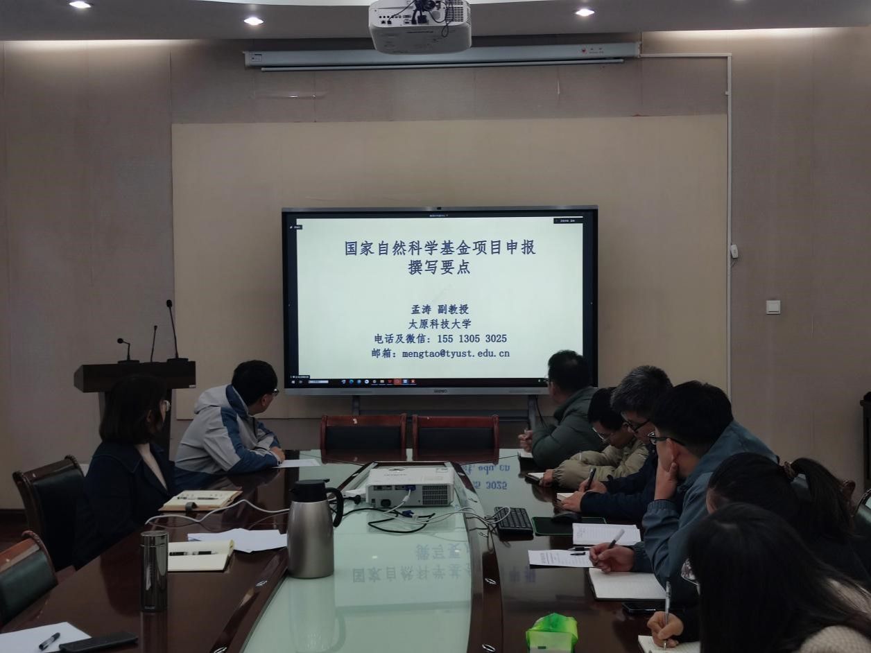 为做好2025年度国家自然科学基金项目申报组织工作,2024年10月23日下午,太阳成集团tyc122ccvip召开项目申报工作推进会,并邀请国家自然科学基金面上项目获得者孟涛副教授做基金项目撰写辅导讲座。